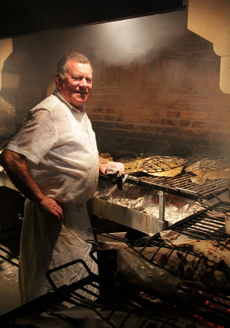 Getaria´s famous seafood restaurants specialize in fish, like the exquisite grilled rodaballo (turbot) shown here, grilled on open grills outdoors alongside the restaurants.