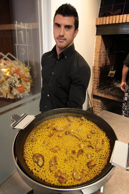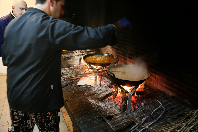 Paella with wild rabbit and snails, cooked over grape vine cuttings.